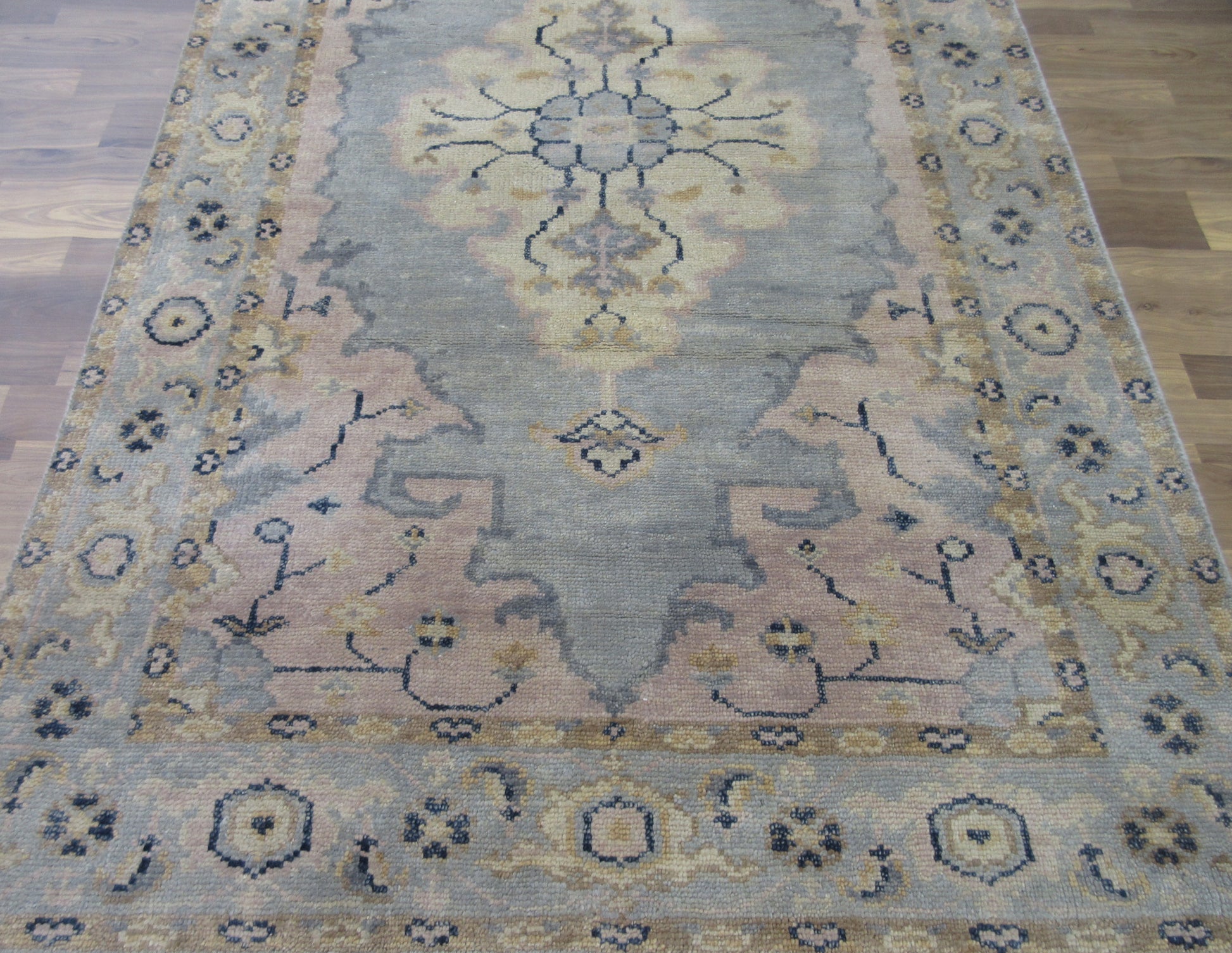 7.9'x4.9' Hand-Knotted Lt. Blue | Lt. Blue Antique Oushak Wool Rug, Traditional Area Carpet