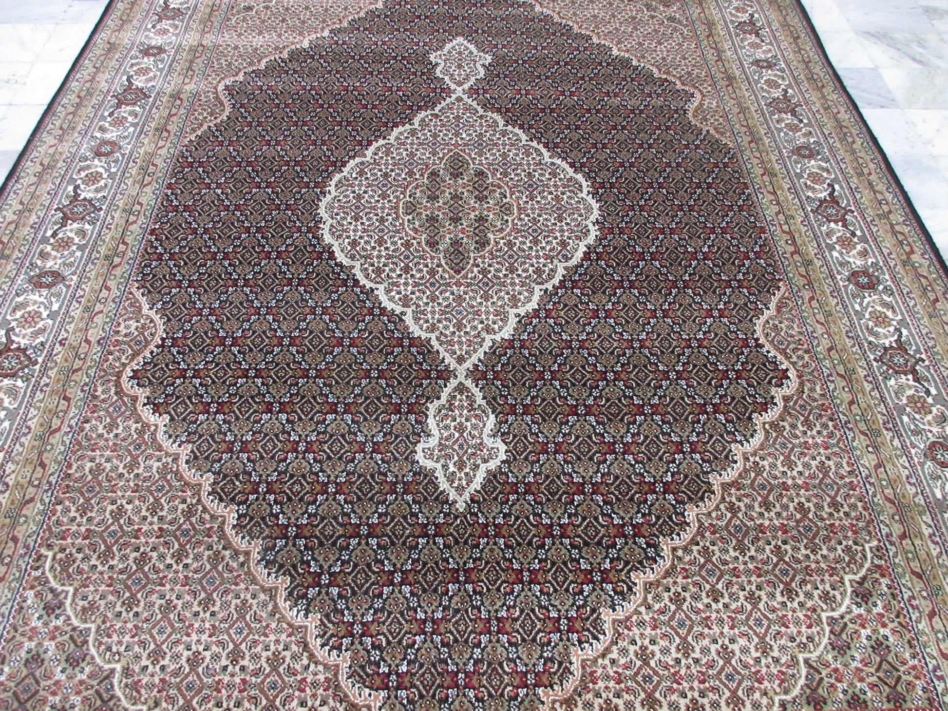 Hand-knotted Area Rug 8.0X10.0 Feet Fine Weave Black Tabriz Mahi Wool Area Rug