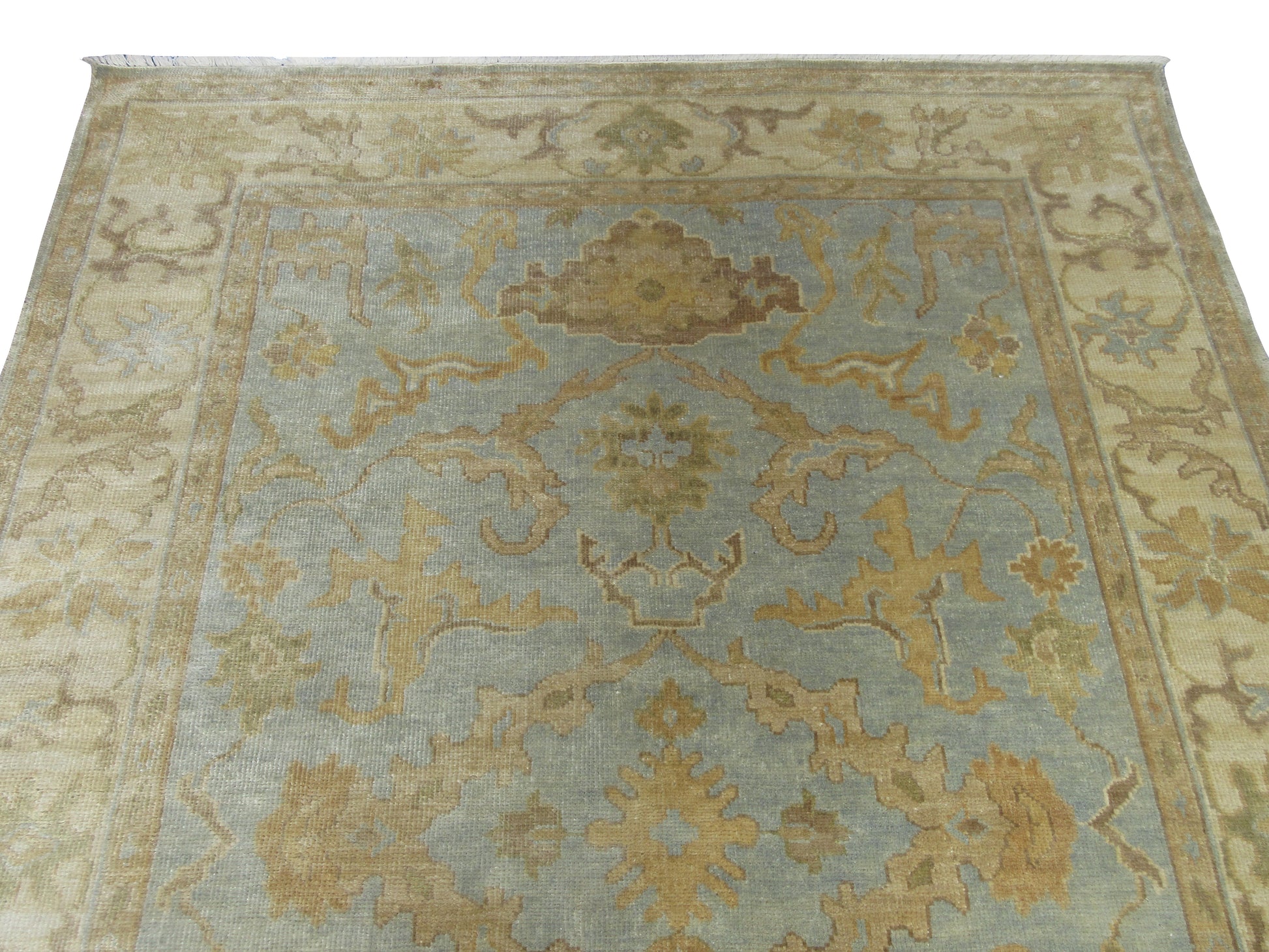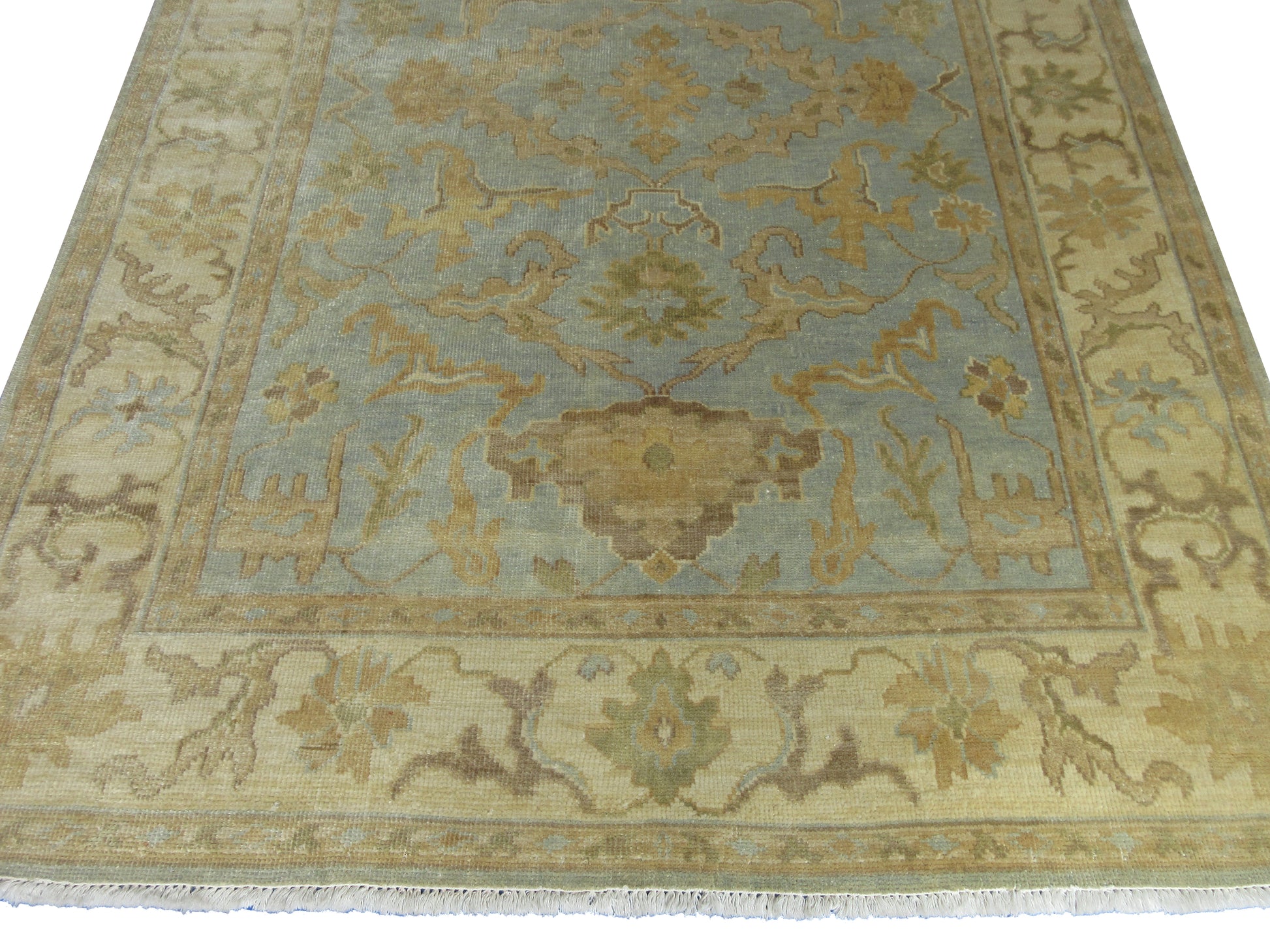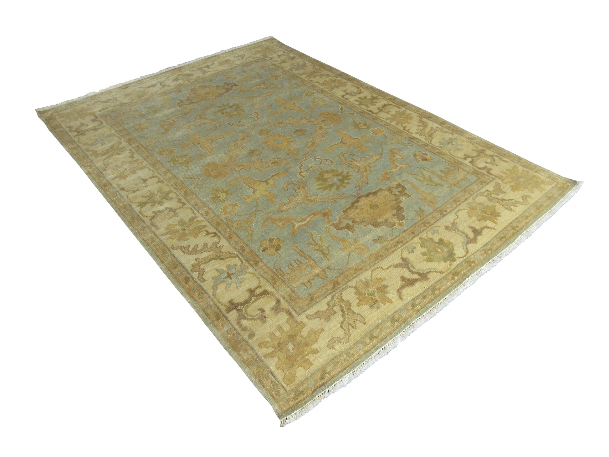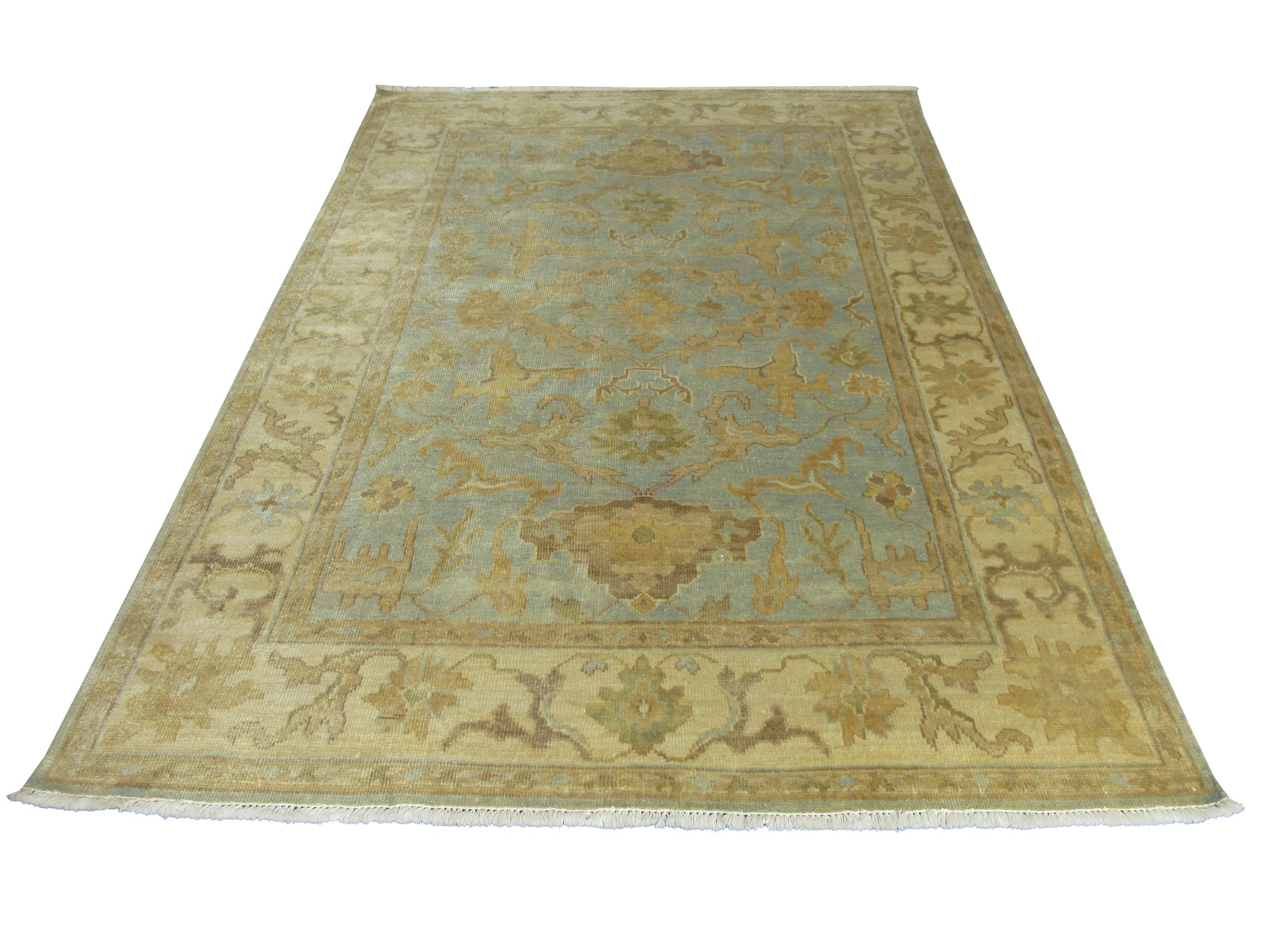 Luxury Oushak Hand-Knotted Wool Rug Traditional Oriental Design 8.4X5.11 Feet - Lt. Blue and Beige Living Room Area Rug