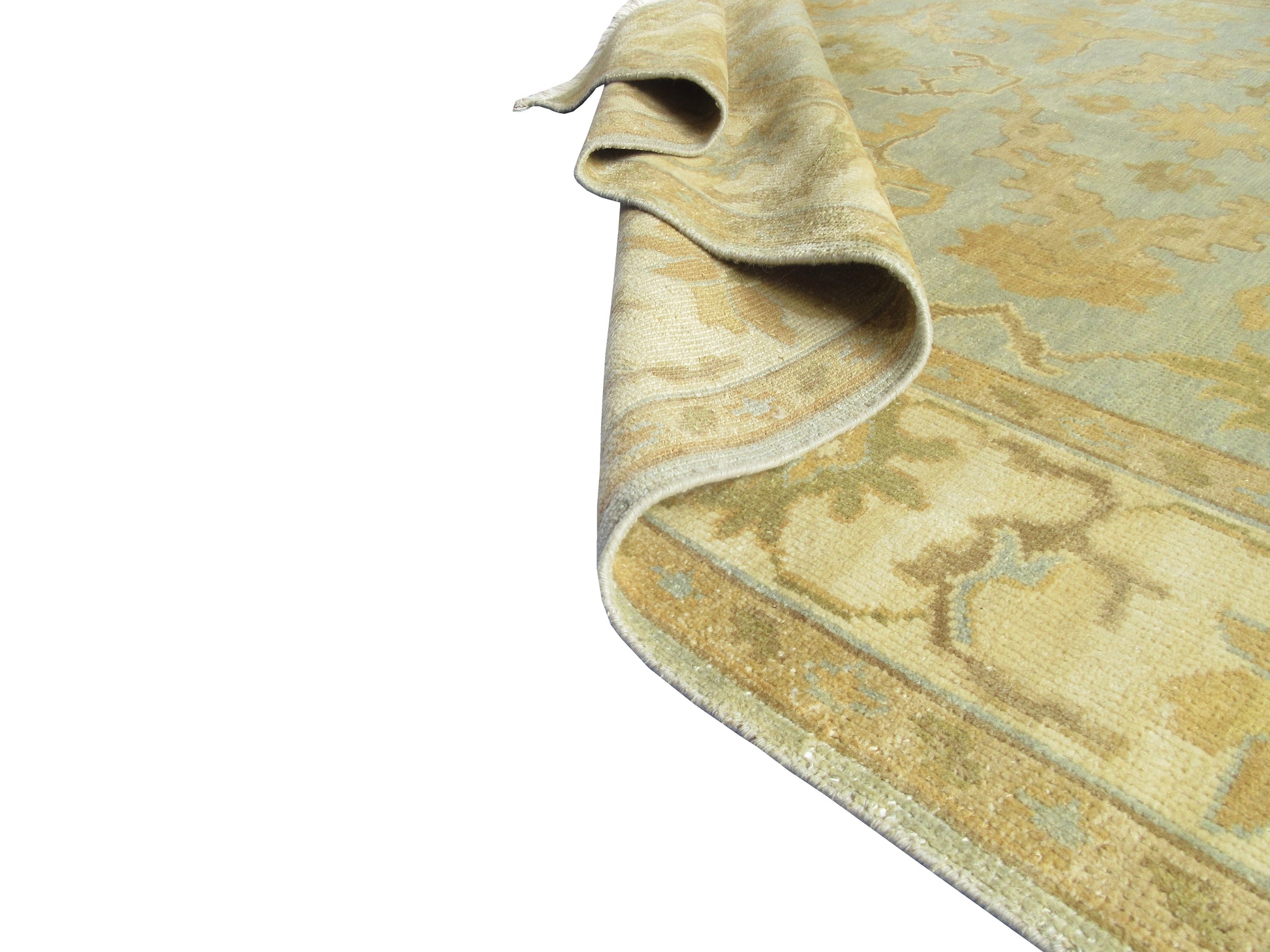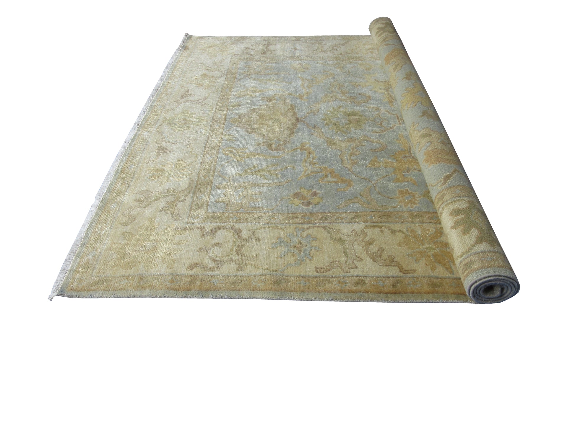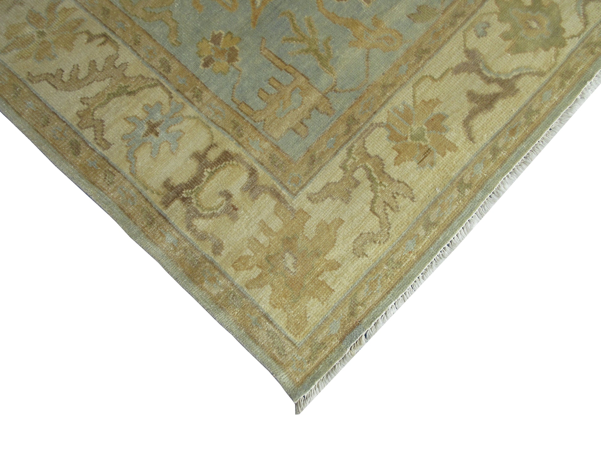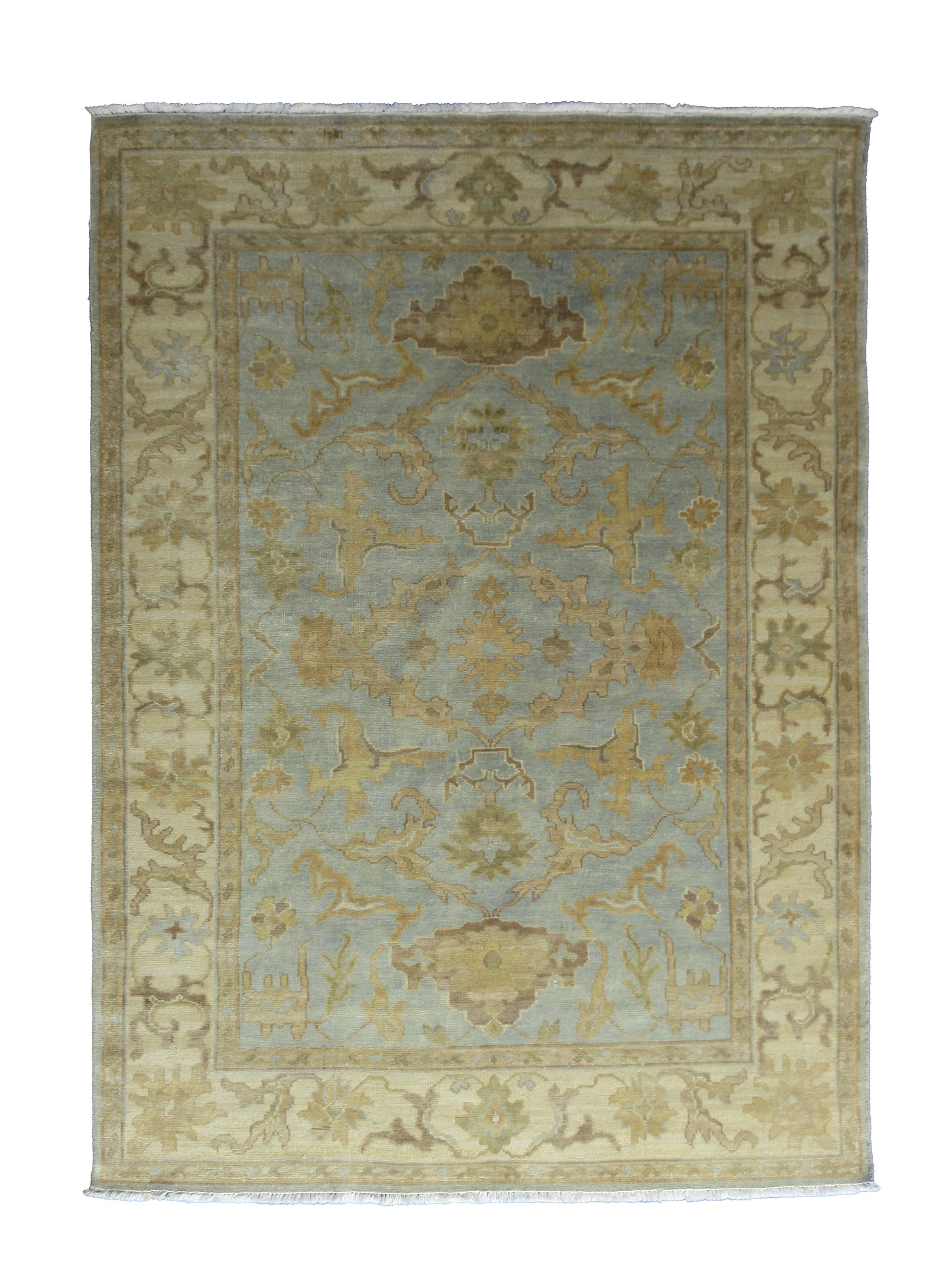 Luxury Oushak Hand-Knotted Wool Rug Traditional Oriental Design 8.4X5.11 Feet - Lt. Blue and Beige Living Room Area Rug