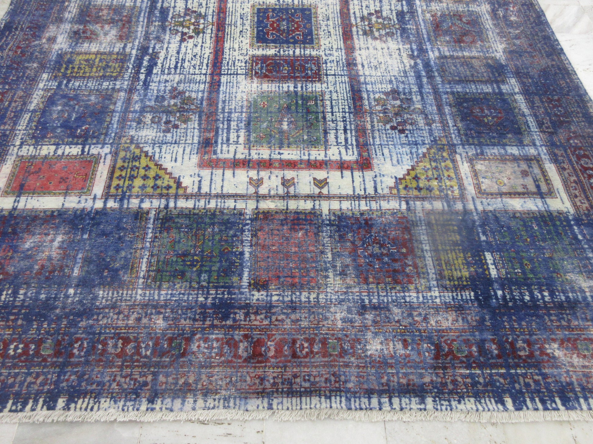 Your living space with this stunning 10x8 feet hand-knotted modern area rug, featuring a unique abstract design. This rug is 100% hand-knotted by expert artisans from the village, ensuring that it is not machine-made. It is a stunning, eye-catching piece of floor art that will elevate the beauty of your living space. The intricate design, vibrant color concept, high-quality materials, and traditional hand-weaving process combine to create a décor element that you'll cherish every time you see it.