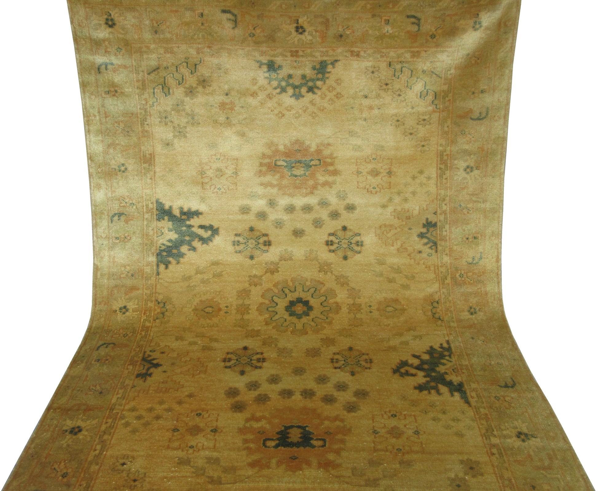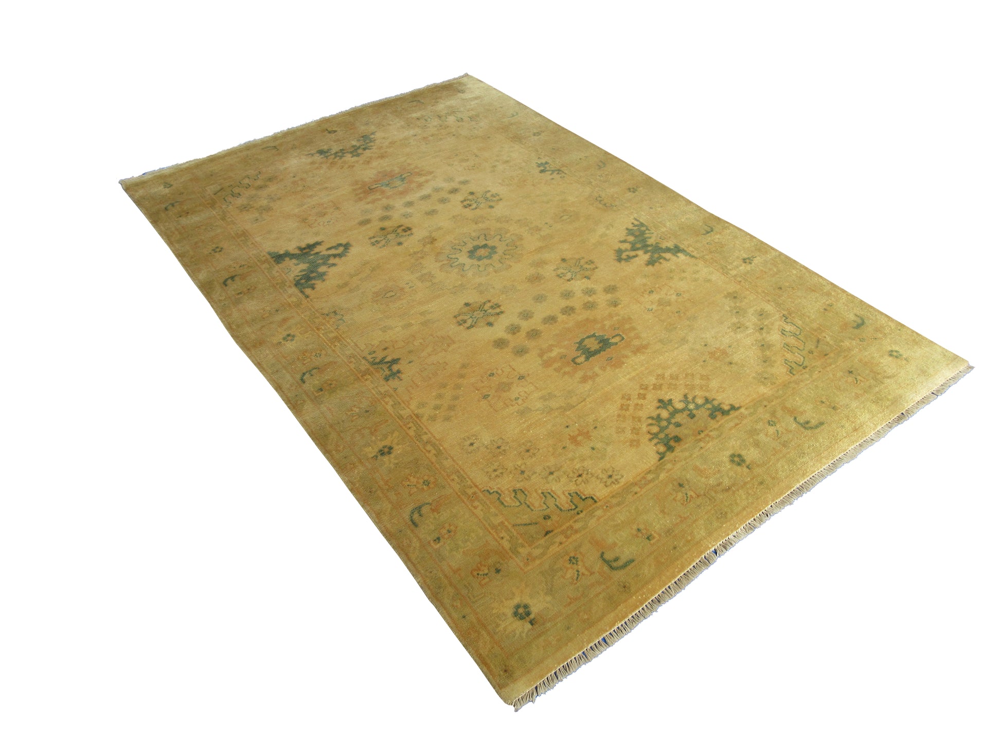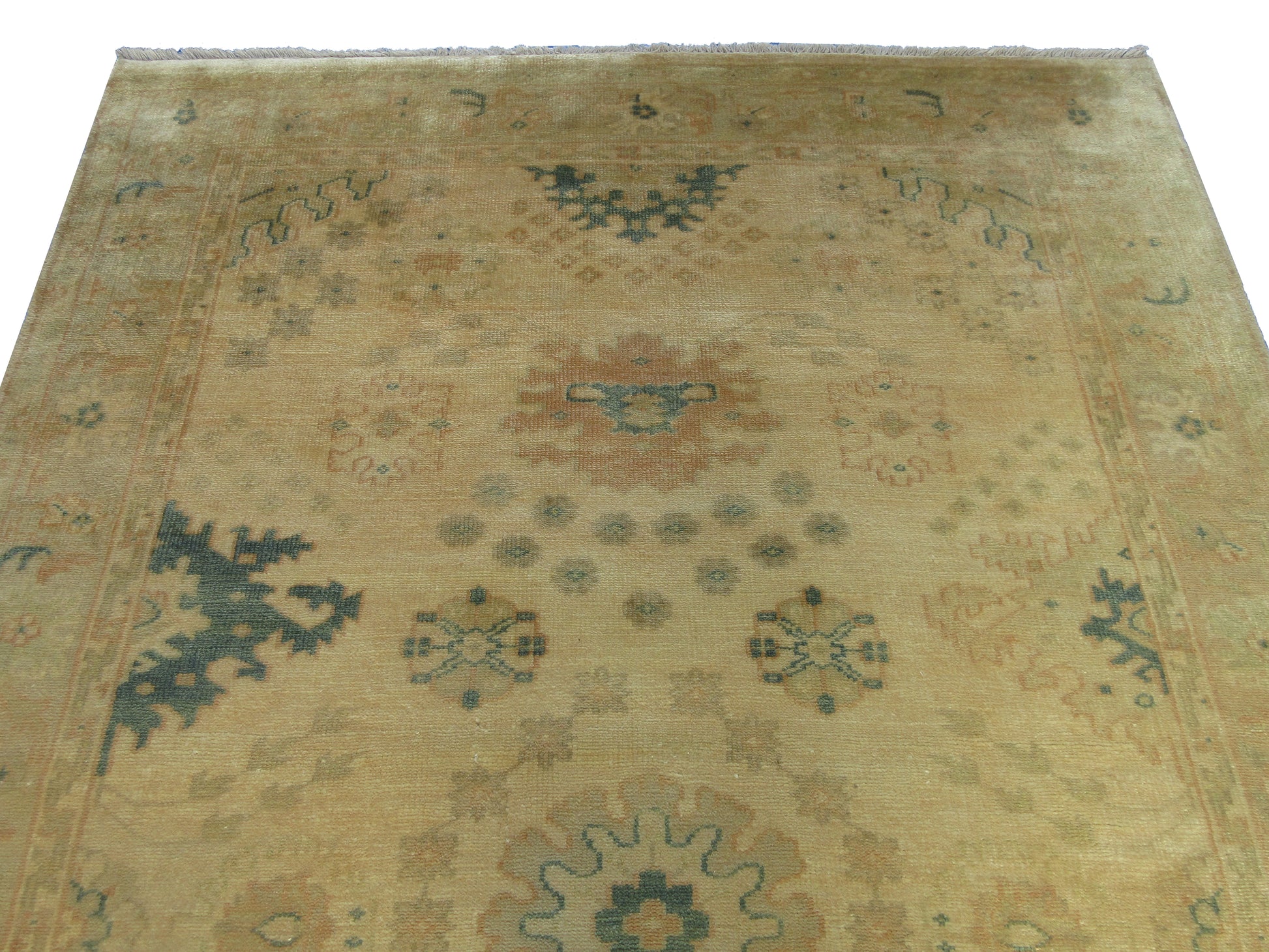 Hand-Knotted Pastel Beige & Brown Oushak Rug 8x5 Feet Pure Wool Vintage Look