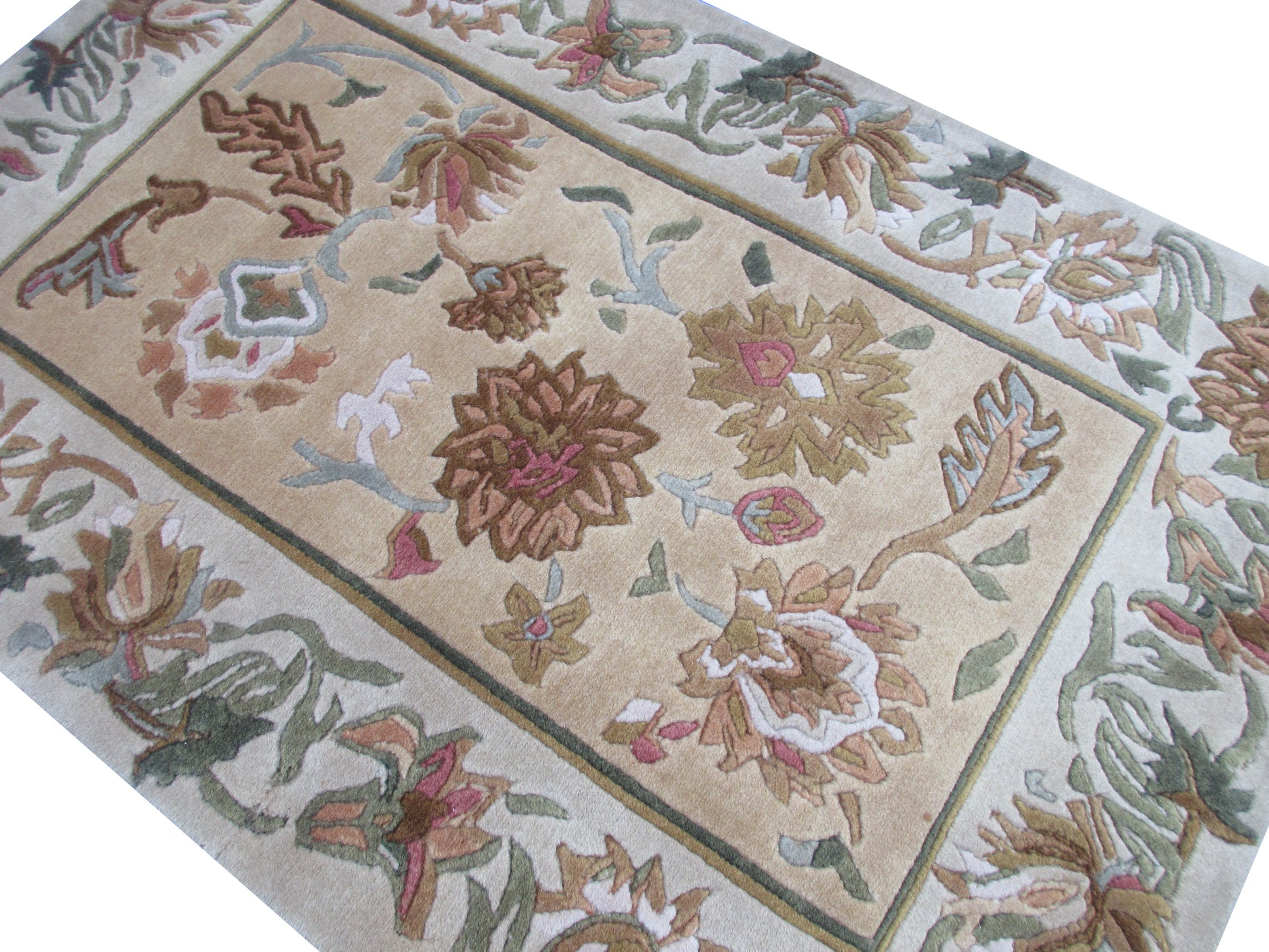Handmad Floral Wool Area Rug -Lt. Gold | Grey and Earth Tones 3.0X2.0 ft Rug