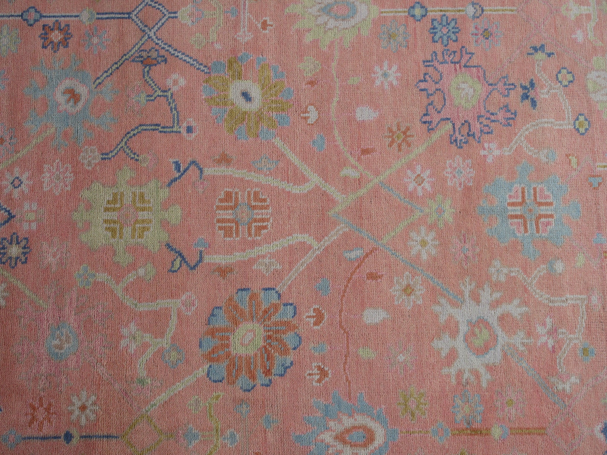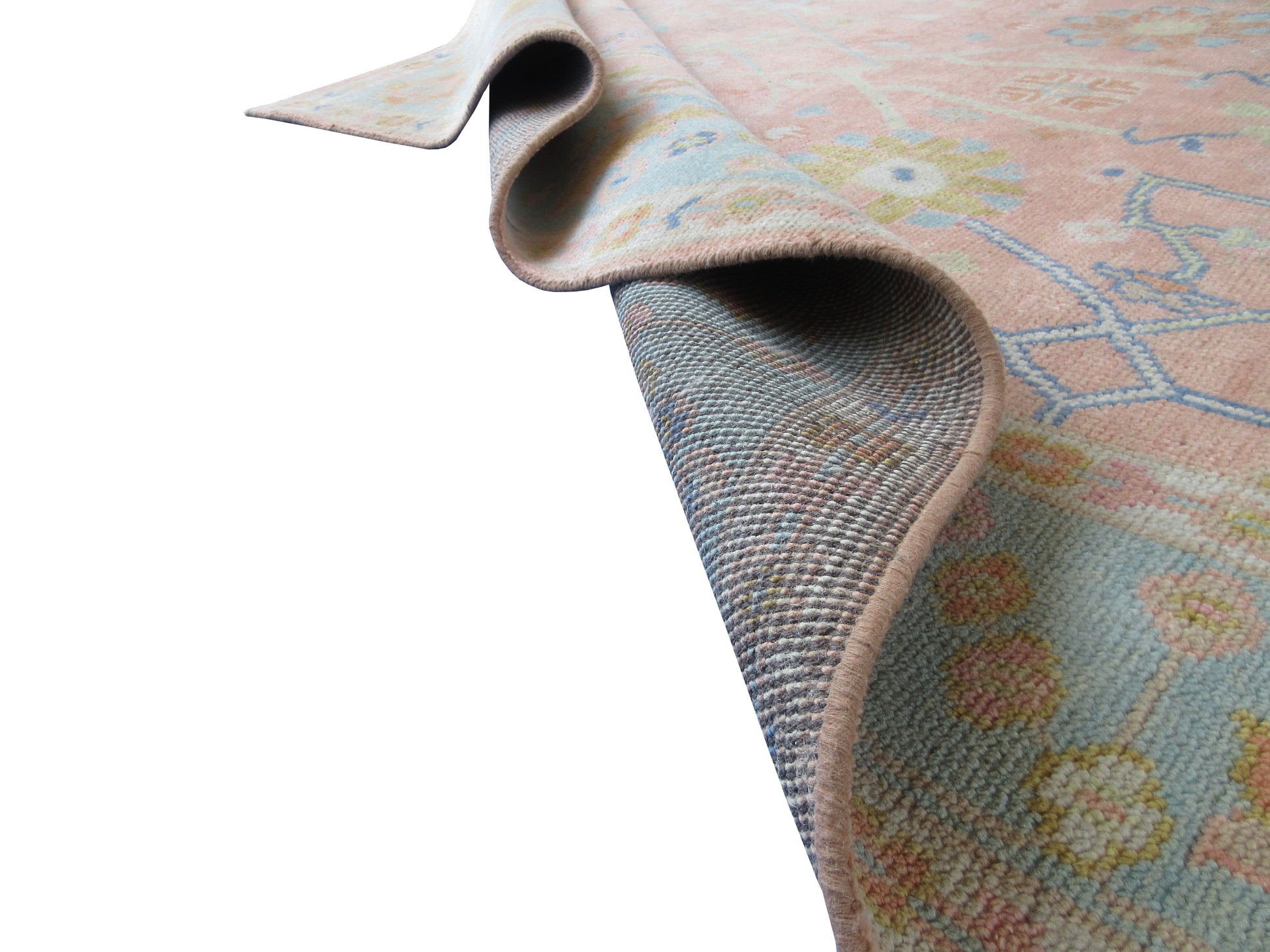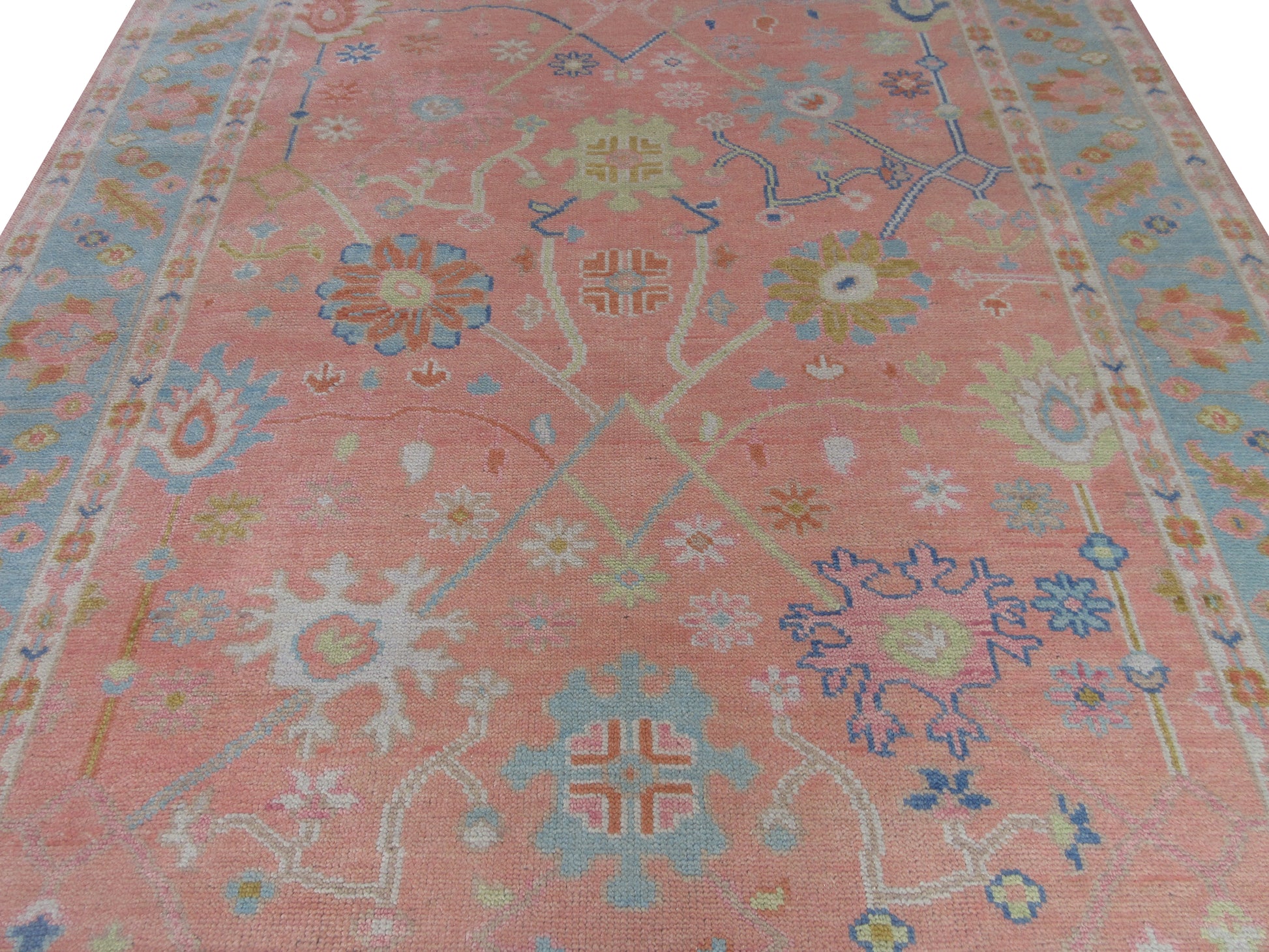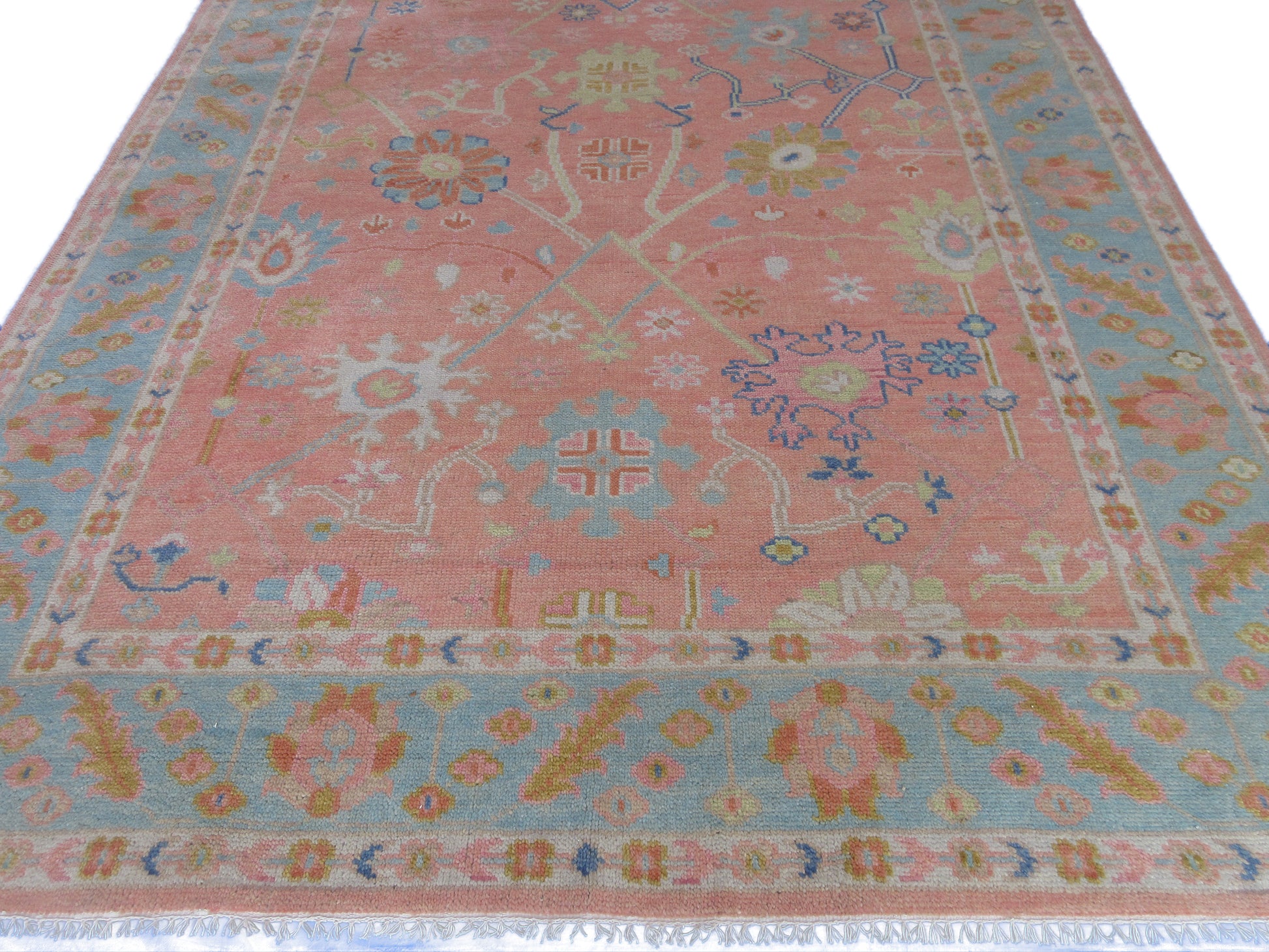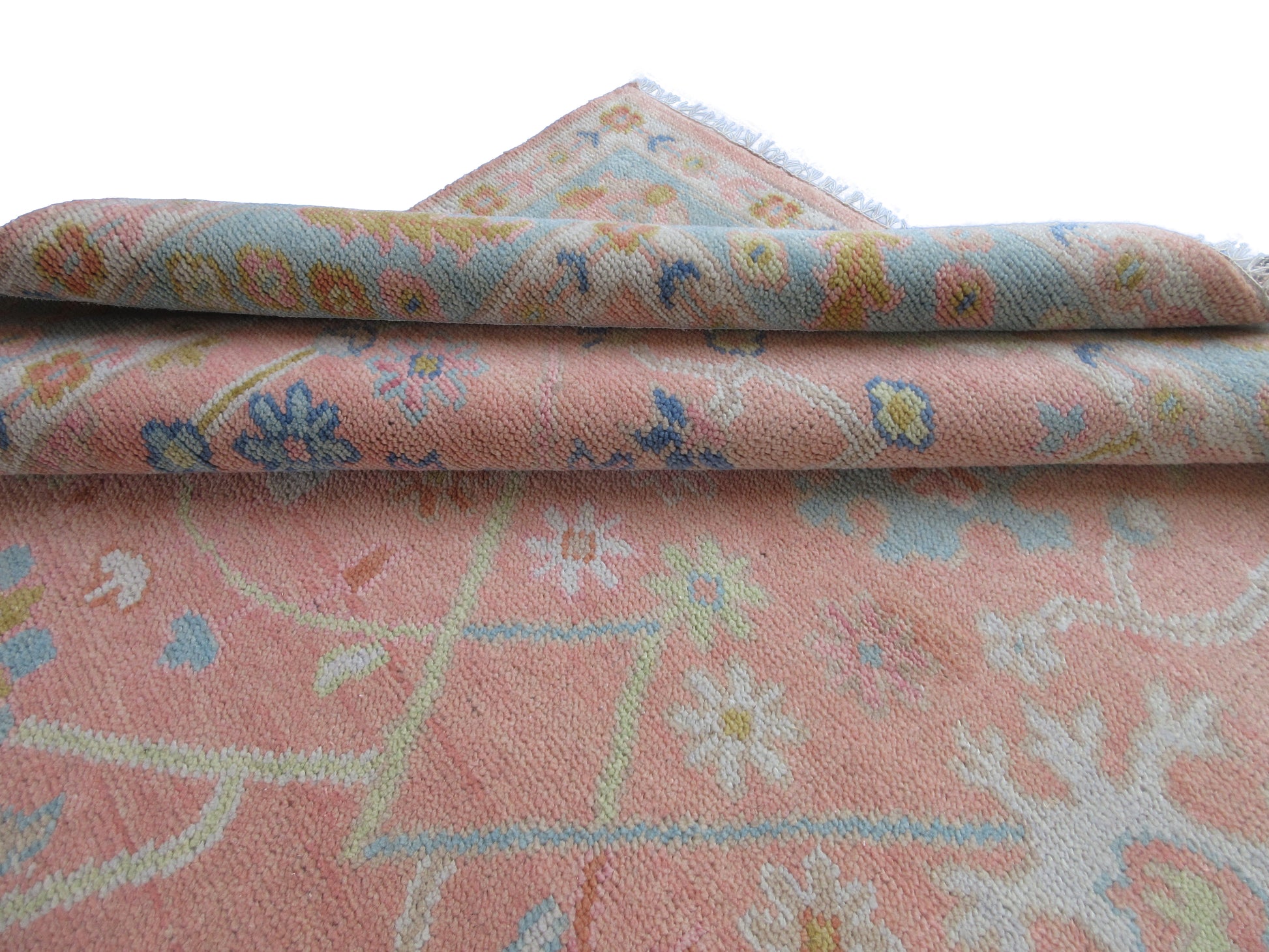 Handmade 10x8 ft Rug Pink and Blue Floral Oriental Wool Carpet - Living Room,