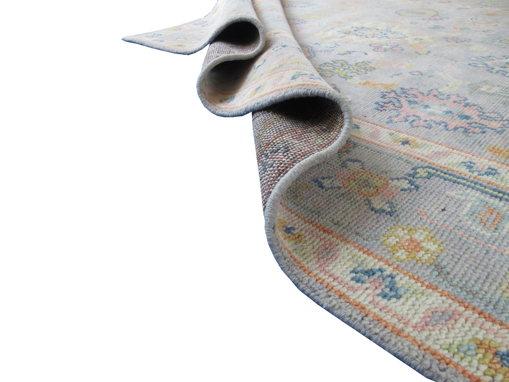 Handmade Oriental Floral Area Rug 10X 8 ft Traditional Design, Soft Grey | Grey Area Rug