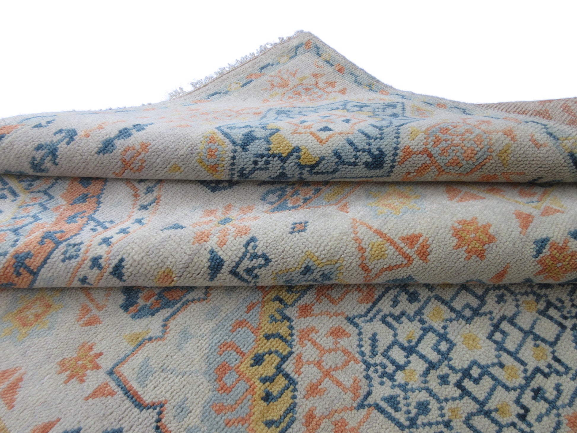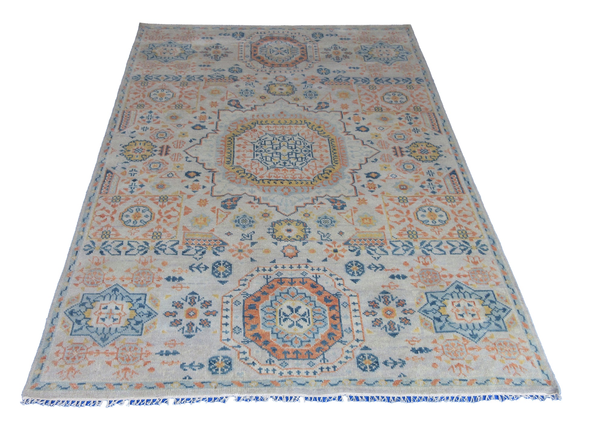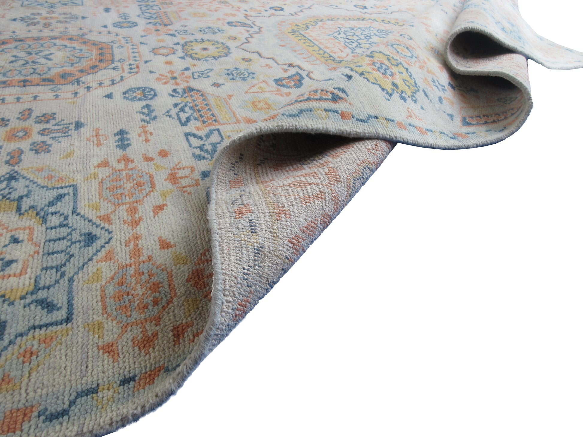 Add a touch of traditional elegance to your home with this beautiful handmade wool rug from The Rug Company. Measuring 10x8 feet, this rectangular rug features a stunning geometric pattern in silver, making it a perfect addition to any room in your home. This rug is 100% hand-knotted by expert artisans from the village, ensuring that it is not machine-made. It is a stunning, eye-catching piece of floor art that will elevate the beauty of your living space. The intricate design, vibrant colour concept, high-quality materials, and traditional hand-weaving process combine to create a décor element that you'll cherish every time you see it.