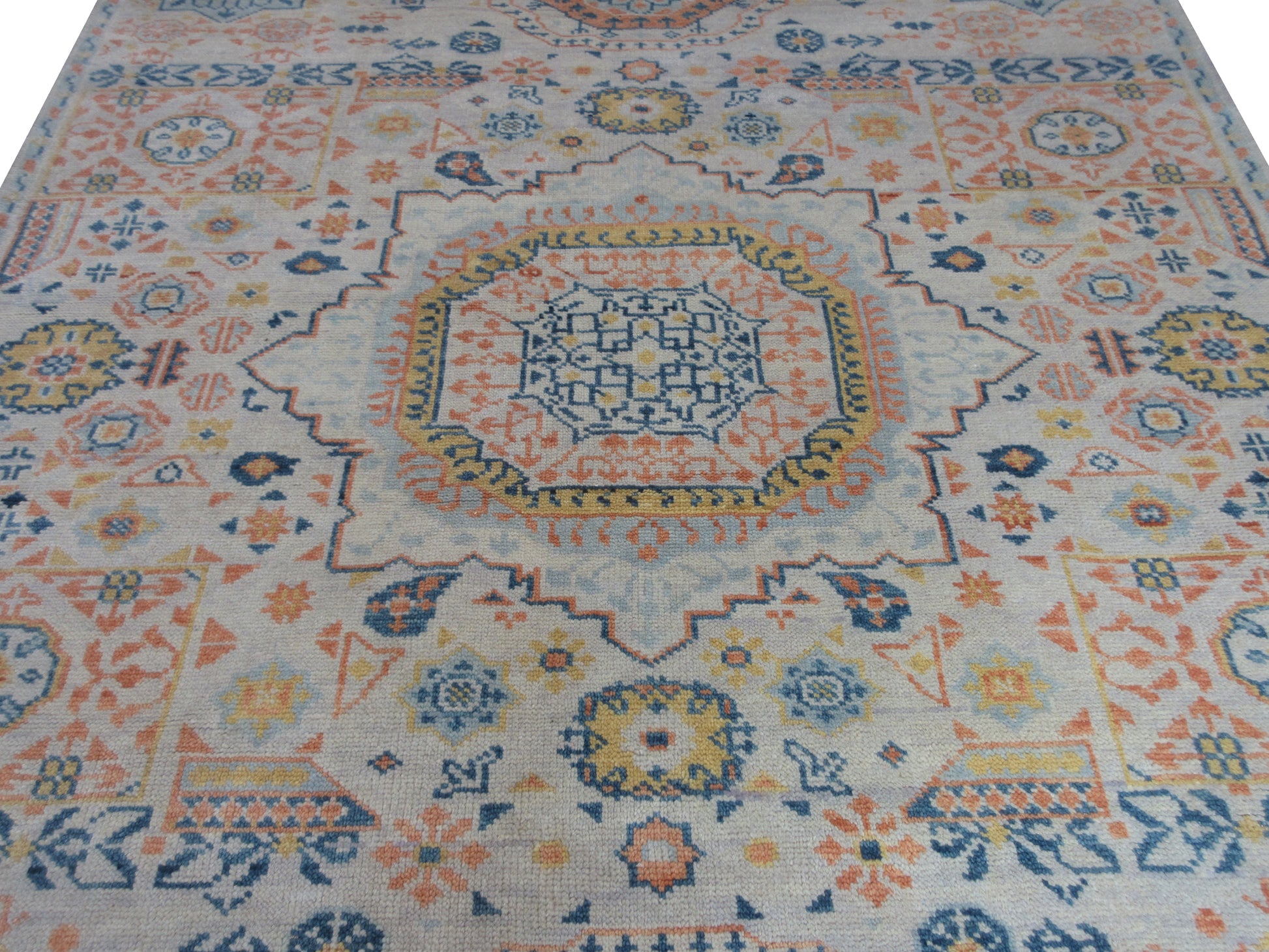 Handmade Oriental Geometric Pattern Rug 10X8 ft Silver Traditional Wool Carpet