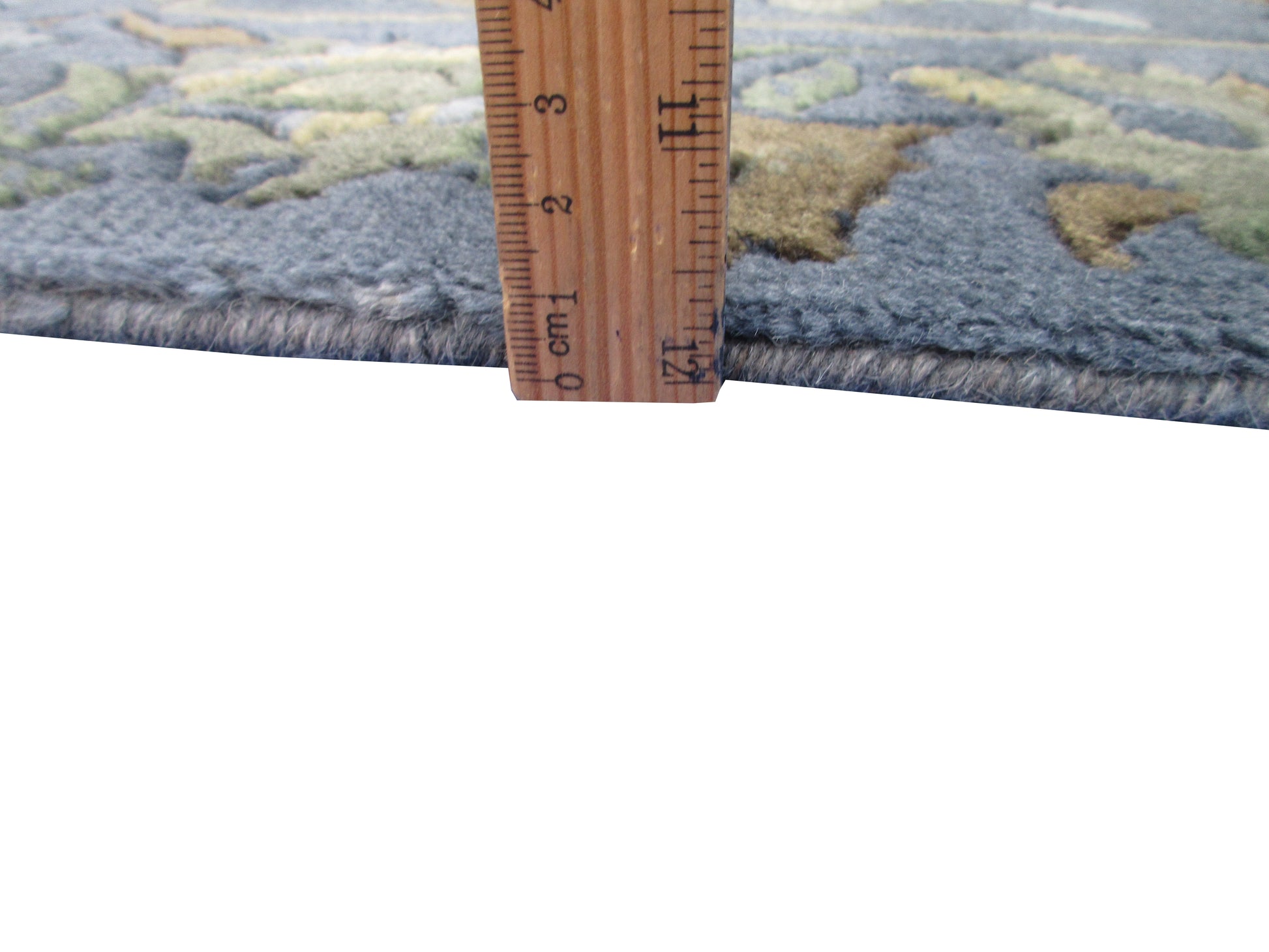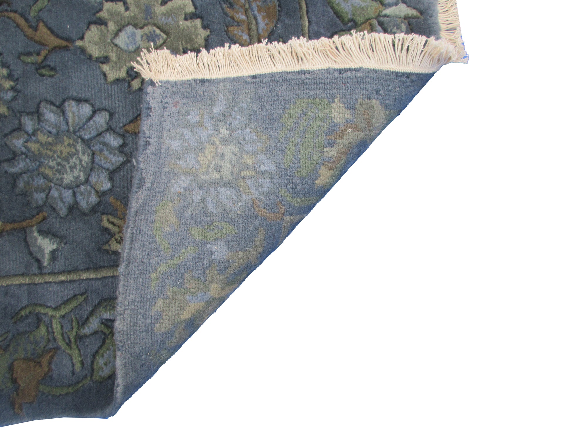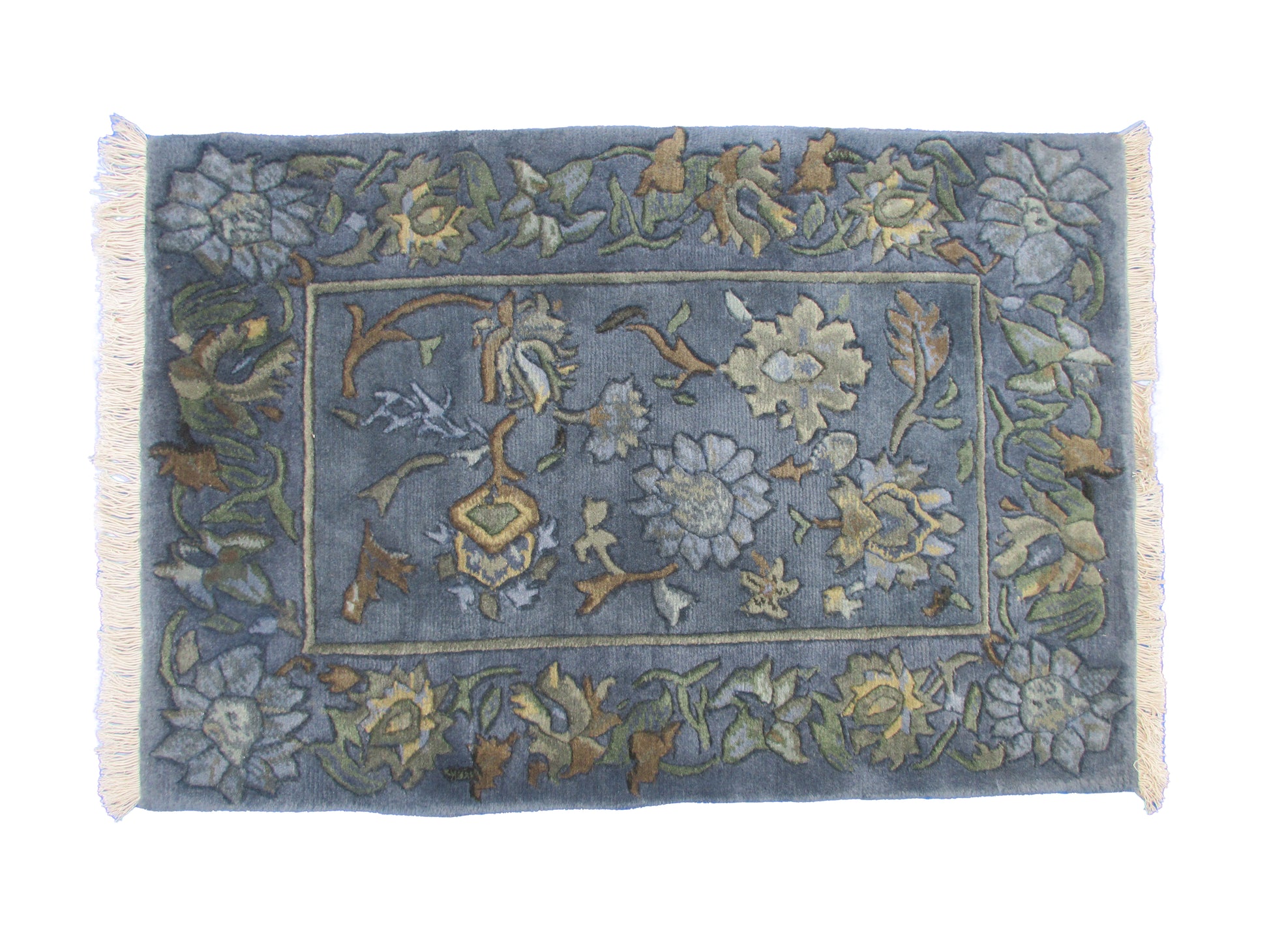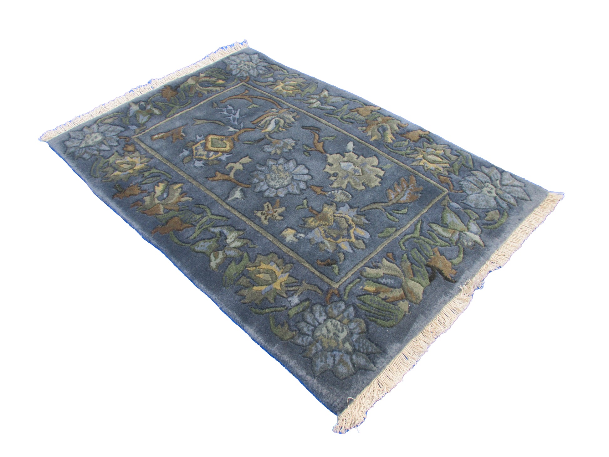 Handmade Wool Floral Area Rug with Blue and Earth Tone Accents | Traditional Design Rug