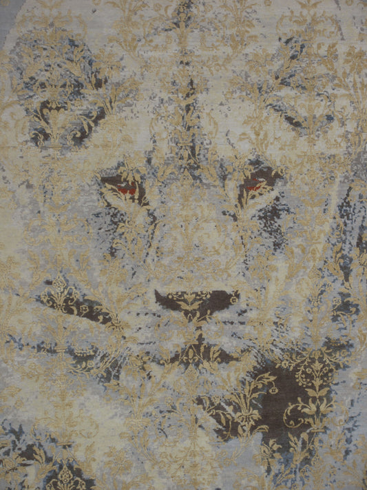 Majestic Lion Design Handmade Silk Rug 8x10ft | Exotic Animal Design Rug