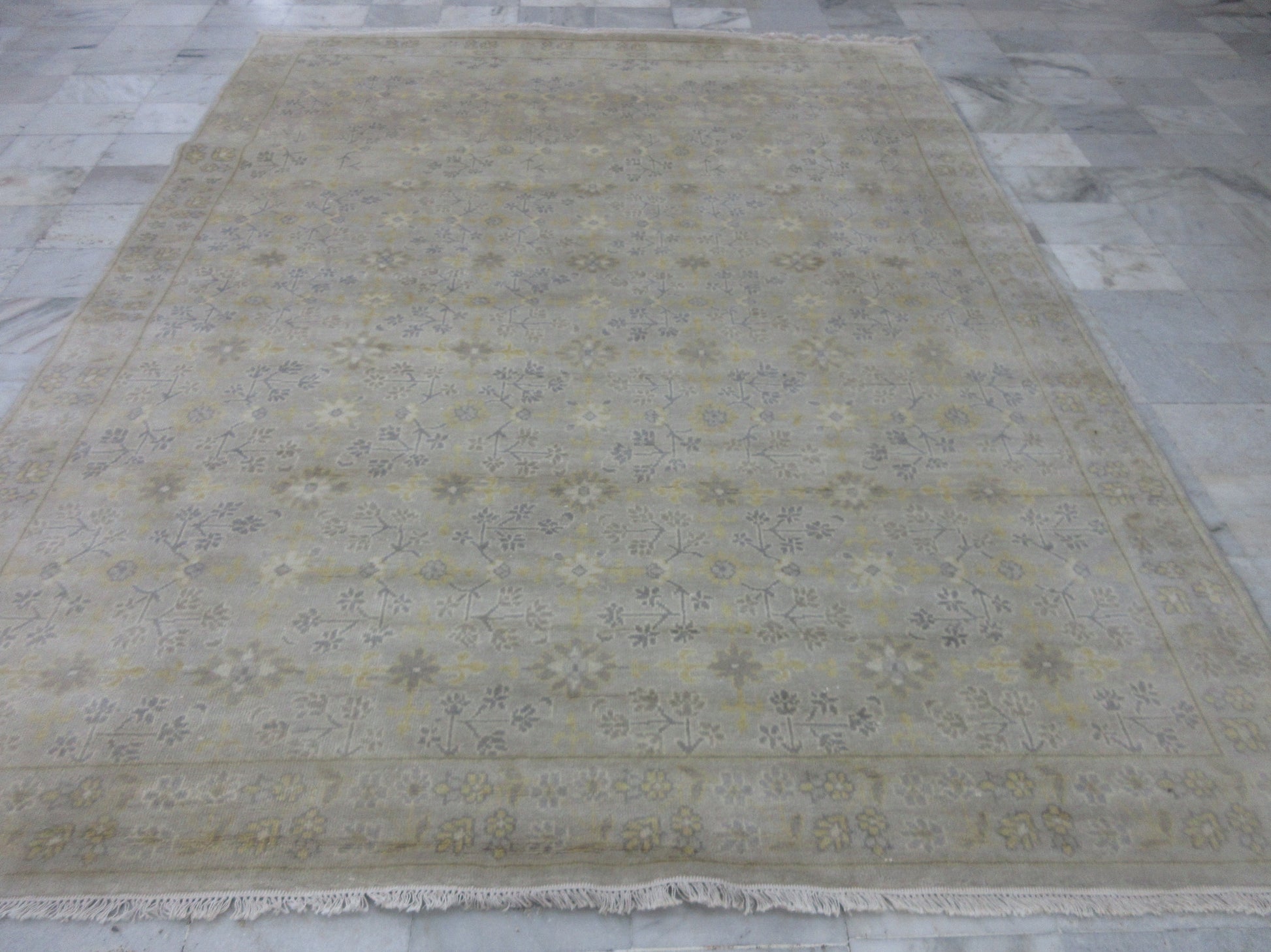10x8ft Hand-Knotted Chobi Peshawar Oushak Rug – Floral Design, Beige | Beige Area Carpet