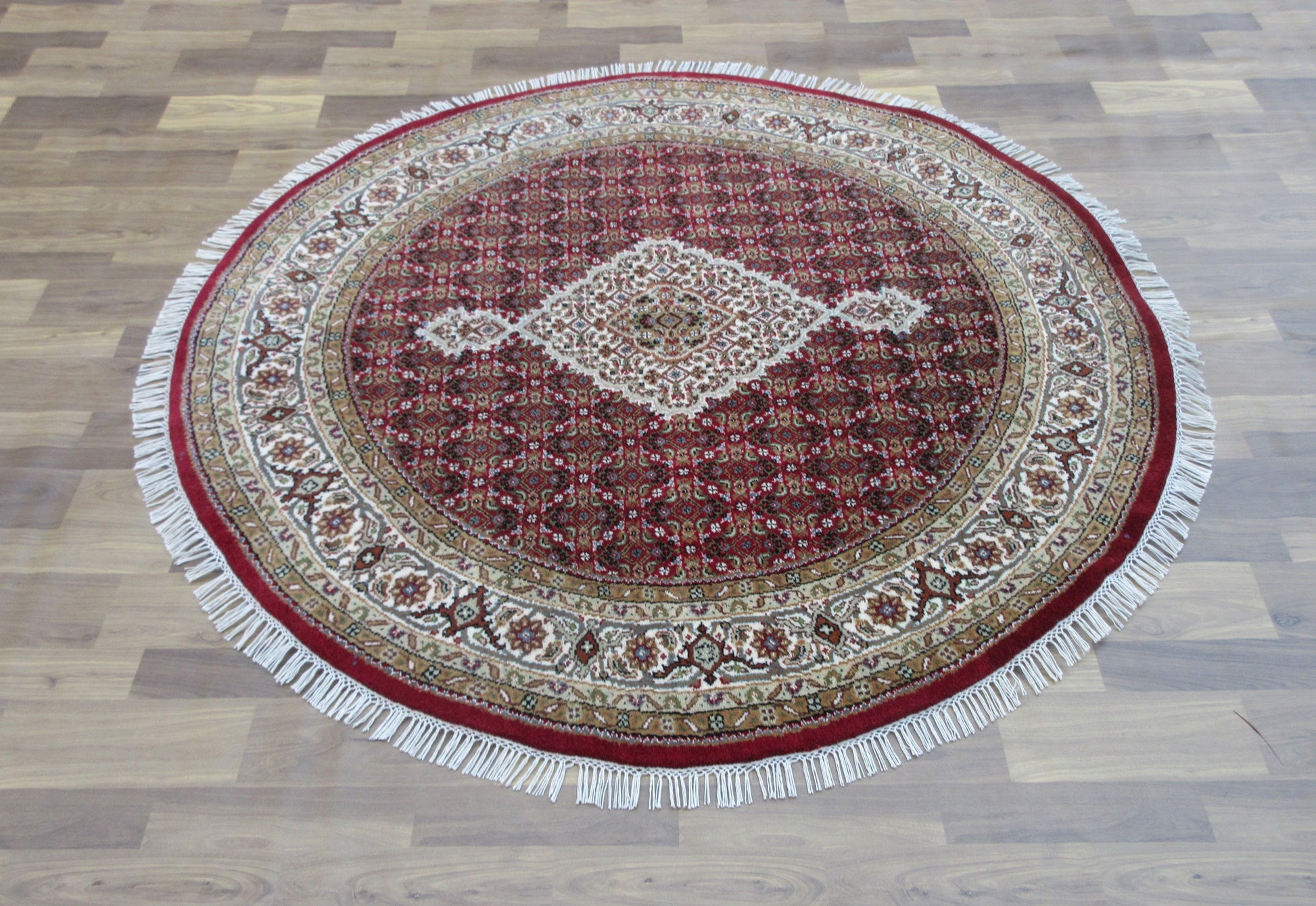 5.2X5 Feet Round Wool Rug, Rust & Ivory Mahi (Fish) - Hand-Knotted Area Rug
