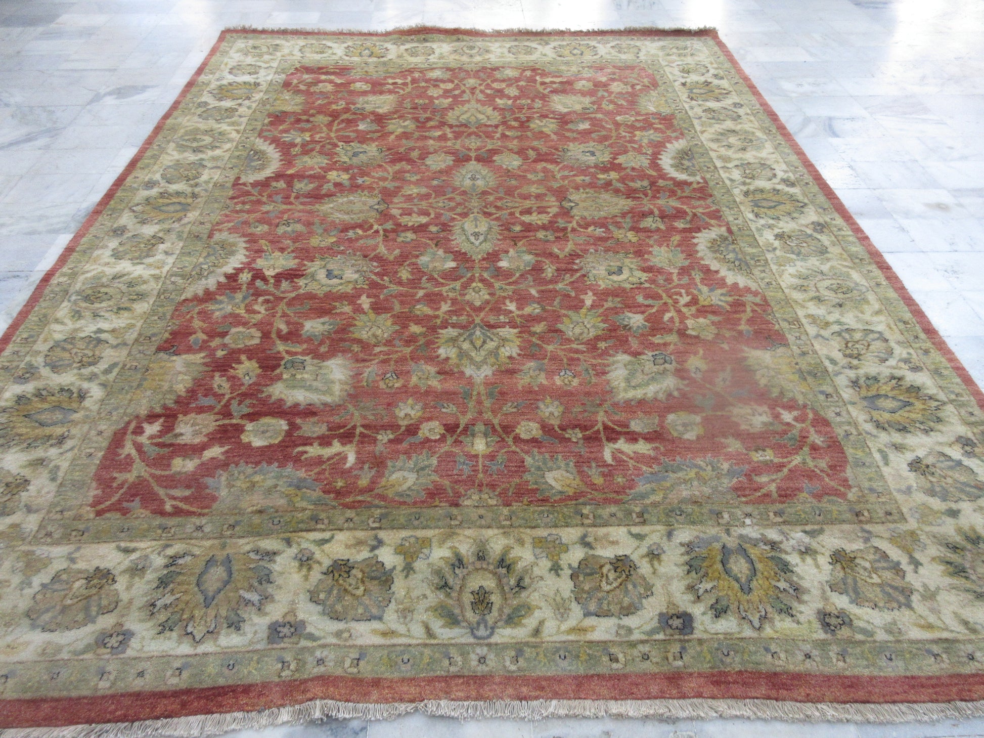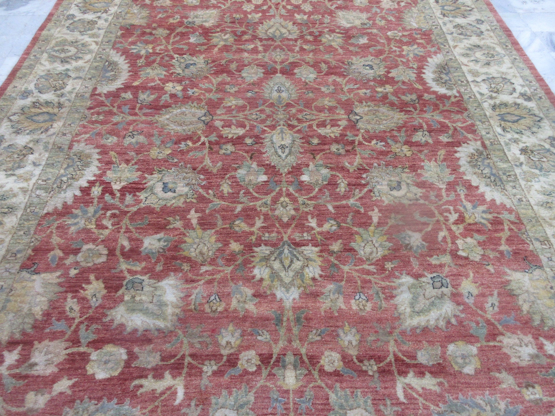 CARE -Regular cleaning will extend life of a carpet and maintain its appearance. If spills occur, blot immediately. Do not rub the stain. Rotate occasionally to equalize wear. Use protectors under the legs of heavy furniture to avoid flattening and piling. If thread comes out do not pull the yarn, trim with scissor. Periodic professional cleaning recommended.