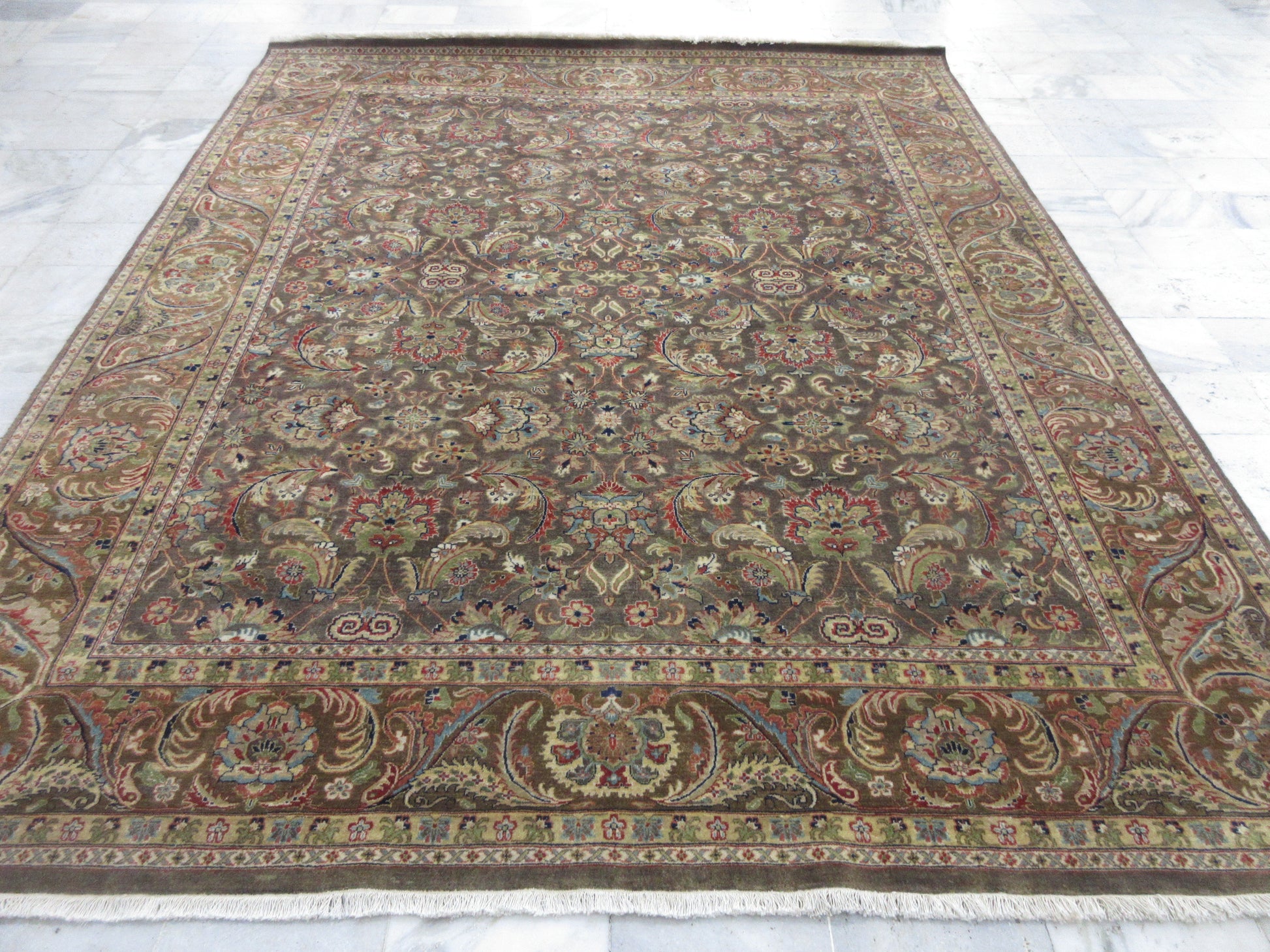 Hand-Knotted 10x8 ft Persian Style Oriental Rug - Wool Floral Design Grey | Brown Area Carpet