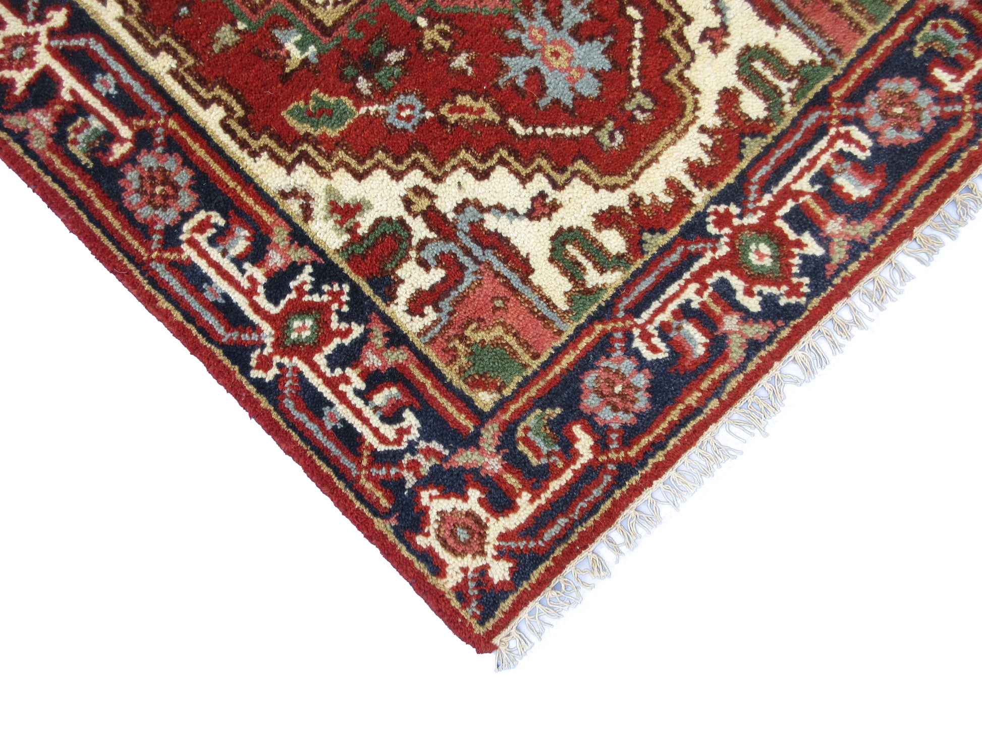 Hand-knotted with 100% pure wool, this Serapi rug boasts intricate details and luxurious comfort underfoot.