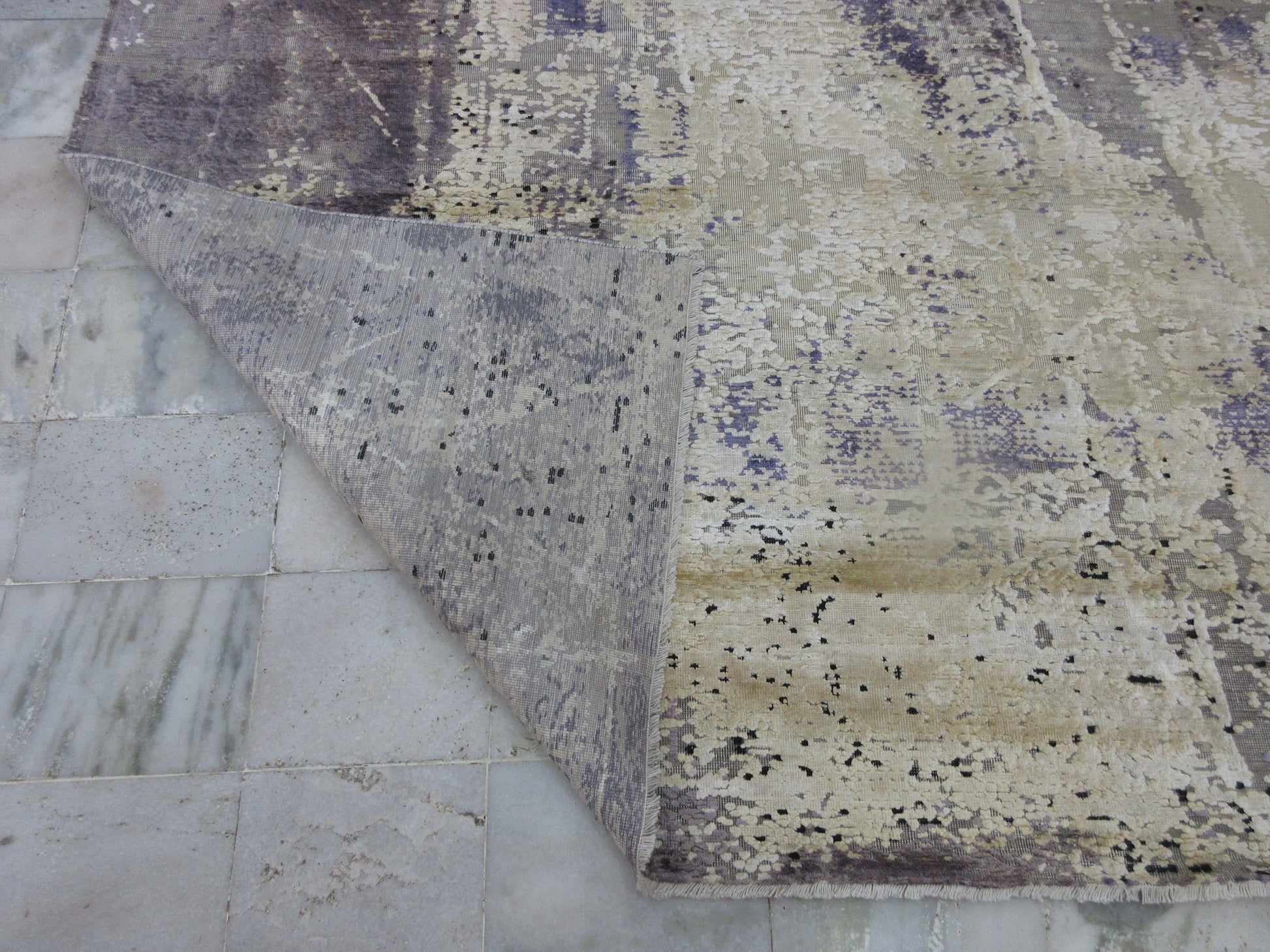 High-quality Hand-Knotted Modern Silk Area Rug 10X8 Feet Eye-Catching Abstract Design Rug