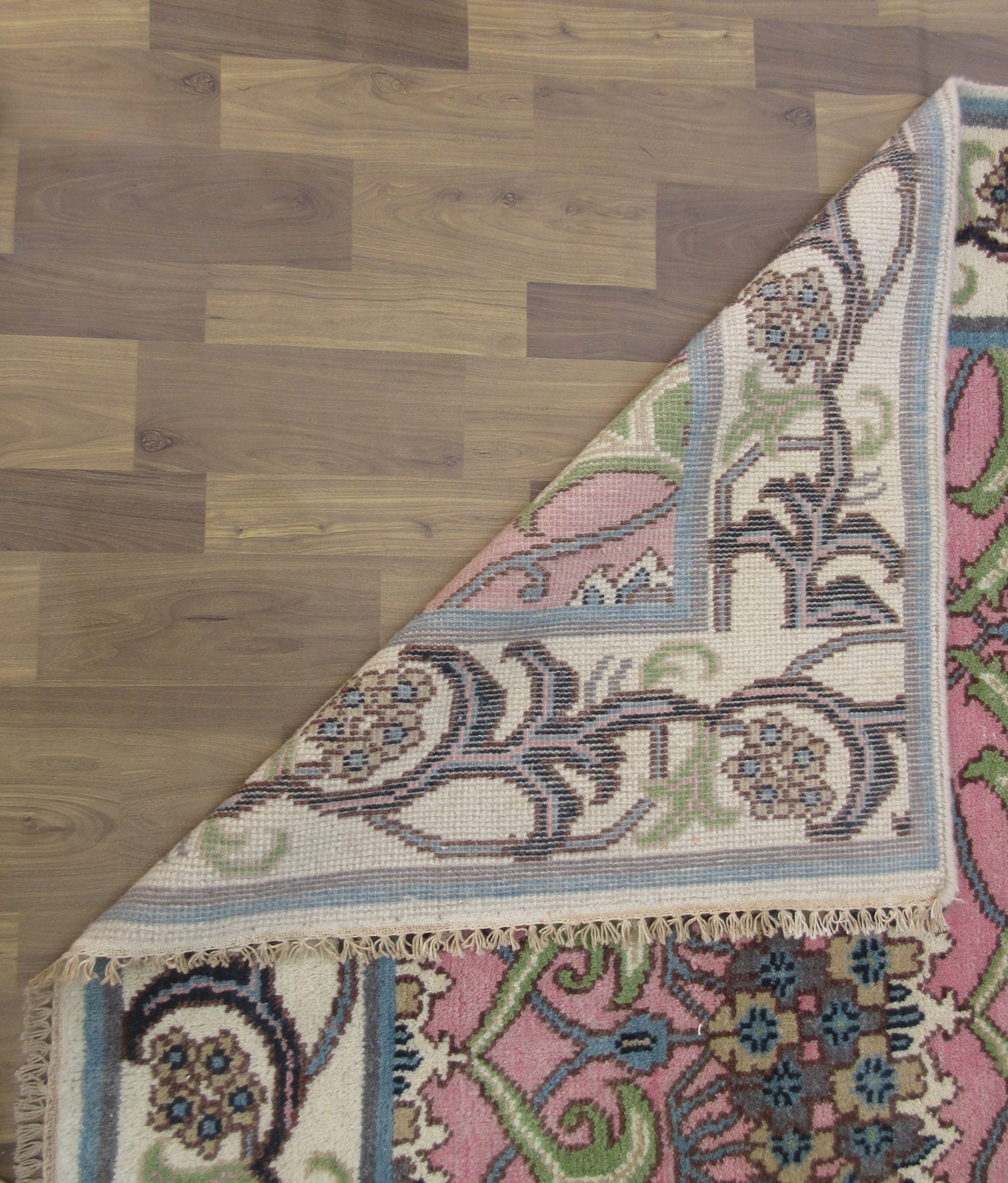 Vintage Hand-Knotted Wool Rug Floral Medallion Design – 9X6 ft Oriental Carpet