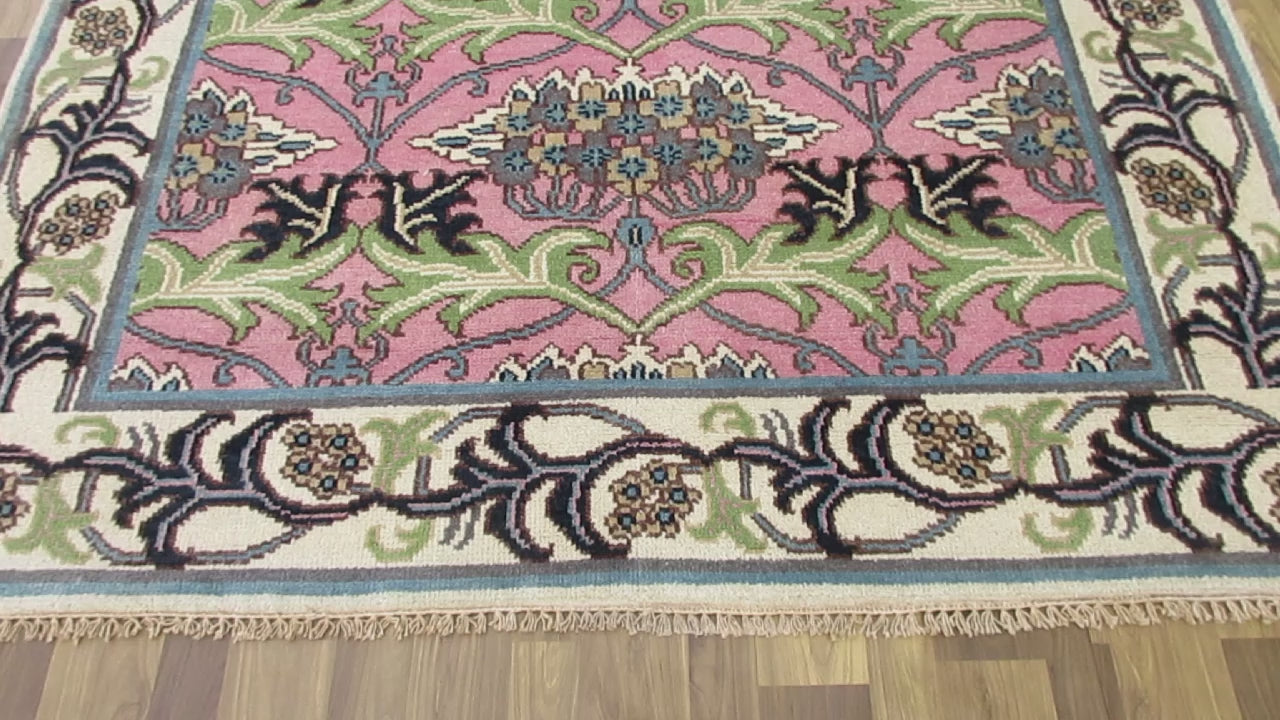 This rug is 100% hand-knotted by expert artisans from the village, ensuring that it is not machine-made. It is a stunning, eye-catching piece of floor art that will elevate the beauty of your living space. The intricate design, vibrant color concept, high-quality materials, and traditional hand-weaving process combine to create a décor element that you'll cherish every time you see it.
